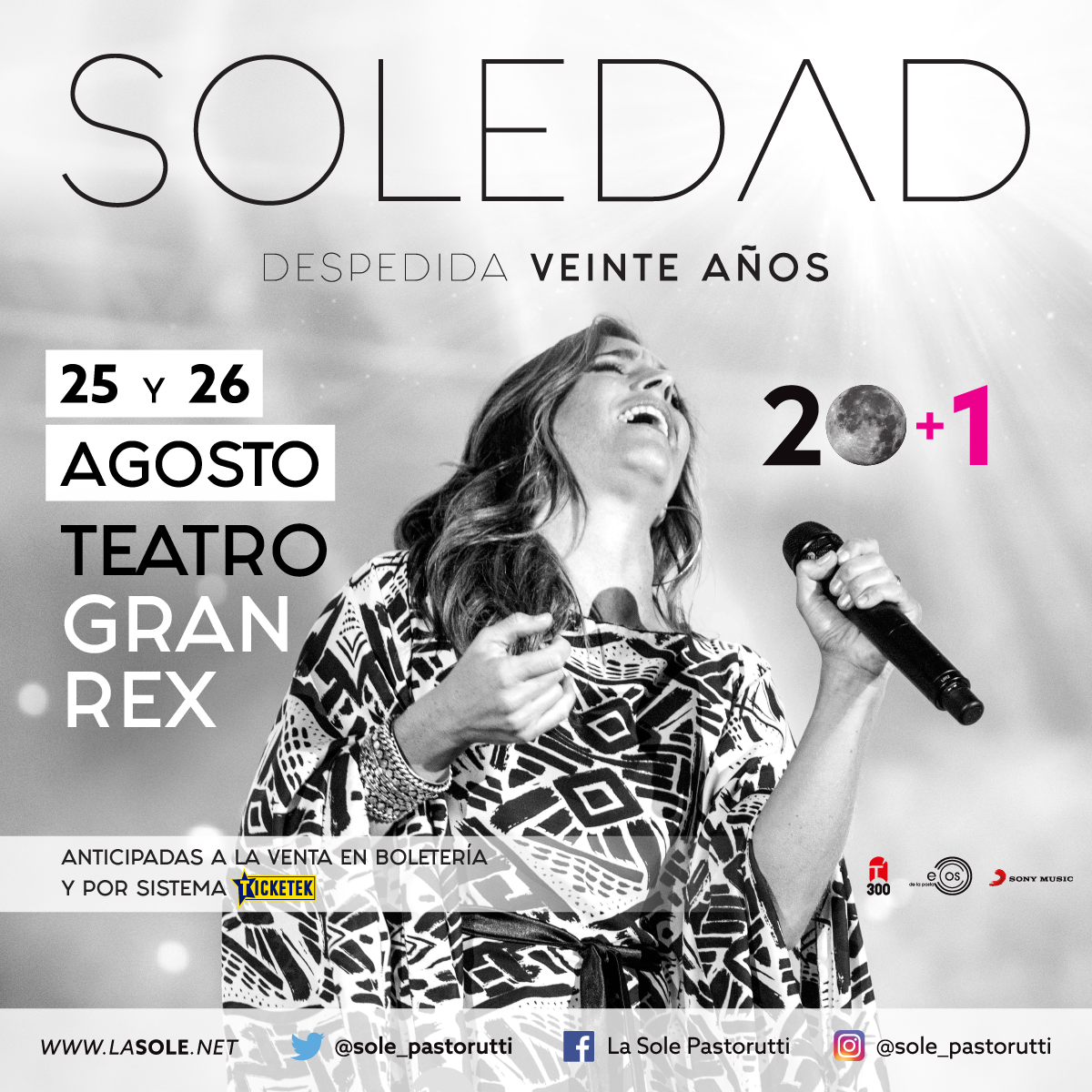 Show en el Teatro Gran Rex. Diseño publicitario. Diseño de cartelería y merchandising oficial. Diseño de campaña en redes sociales. Edición de videos promocionales.