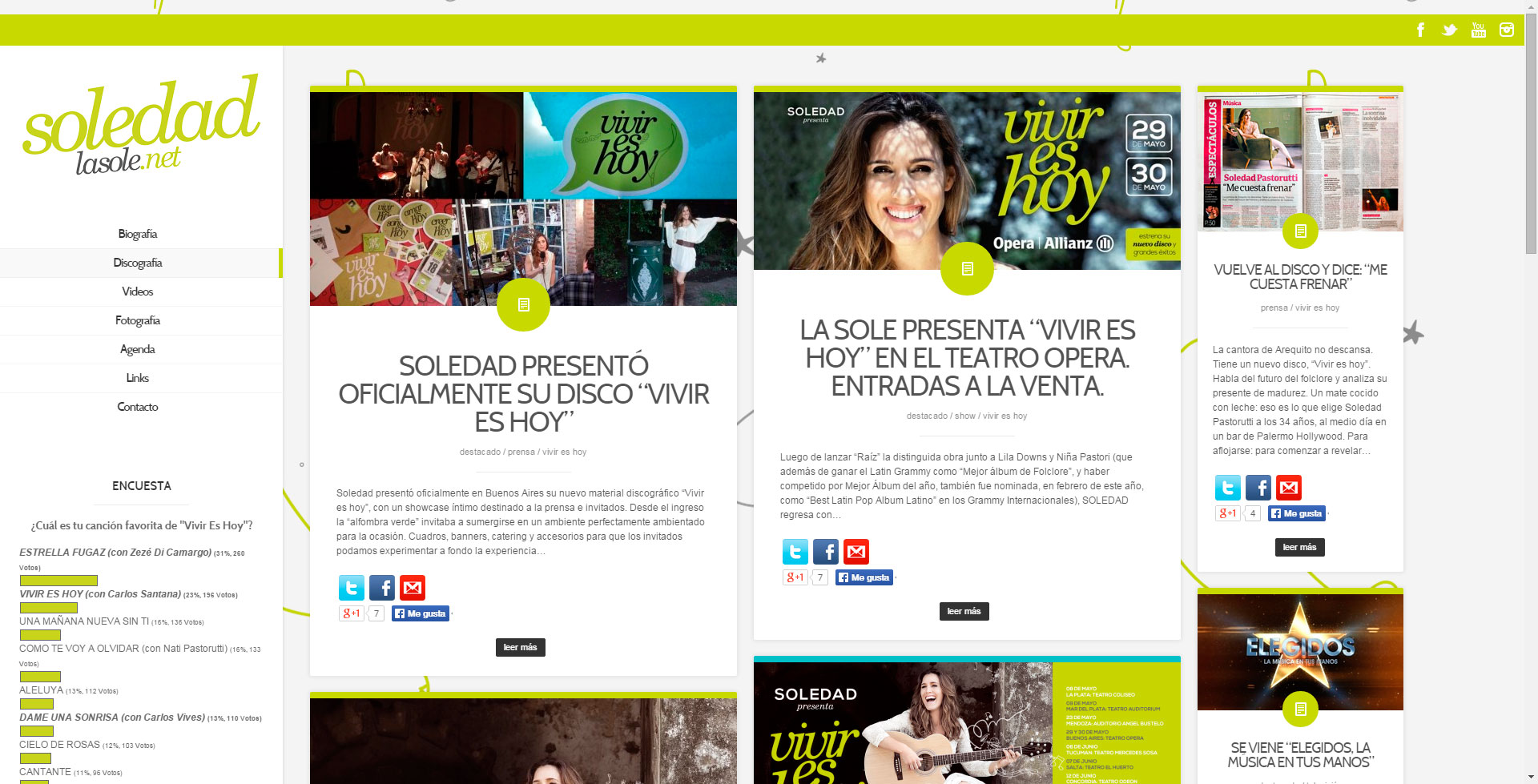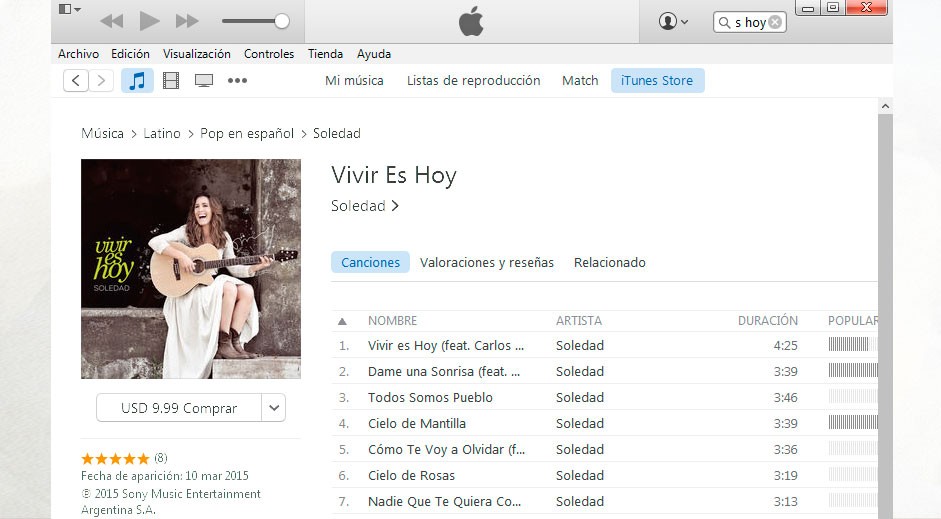 Vivir es hoy es el décimo quinto disco de la cantante Soledad Pastorutti lanzado el 10 de marzo de 2015. Producido por Gian Marco y Matías Zapata. Fue grabado entre Buenos Aires y Los Ángeles. Cuenta con la colaboración internacional de Carlos Santana y Carlos Vives.